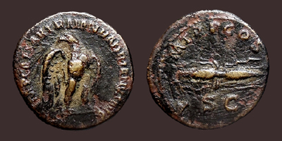 Rev: IOVI CONS – ERVATORI Jupiter standing left, holding Victory on globe in right hand, scepter in left; to left, eagle