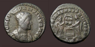 803. Licinius II, as Caesar. 317-324 AD. Æ Follis (19mm, 3.63 gm, 5h). Heraclea mint. Obv: Laureate and draped bust left, holding globe, scepter and mappa. Rev: Camp gate; MHTΔ in ex. RIC VII 19. EF, substantial silvering.....(Image) $40 804. Licinius II. as Caesar, 317-324 AD. Æ Follis (19mm, 2.93 g, 6h). Thessalonica mint. Struck 318-319 AD. Obv: LICINIVS IVN NOB CAES, laureate, draped, and cuirassed bust right. Rev: VOT V MVLT X CAESS ιn three lines within wreath; TSB in exergue. RIC VII 41. Rare. Some silvering.........(Image) $30 805. Licinius II. Caesar, 317-324 AD. Æ Follis (22mm, 2.84 gm, 2h). Siscia mint, 1st officina. Struck 320 AD. Obv: Laureate, draped, and cuirassed bust left, holding Victory on globe and mappa. Rev: Two captives seated at base of vexillum inscribed VOT/X in two lines; S–F on either side; ASIS✴ in exergue. RIC VII, II5 (r5). Rare..................................................................................(Image) $45 806. Licinius II, Caesar, 317-324 AD. Æ Follis (20mm, 3.19 g 1), Thessalonica, struck 320 AD. Obv: LICINIVS IVN NOB CAES, laureate head right. Rev: CAESARVM NOSTRORVM around VOT V; in ex. TSЄVI. RIC 92.....(Image) $25 807. Constantine I. 307-337 AD. Æ Follis? Seems silver. Siscia, Struck 318 AD. Obv: IMP CONSTANTINVS PF AVG, helmeted, cuirassed bust left with spear over shoulder. Rev: VICTORIAE LAETAE PRINC PERP, two Victories holding shield inscribed VOT PR on altar, ΓSIS in exergue. RIC 49..............(Image) SOLD 808. Constantine I 307-337 AD. Æ Nummus. Struck at Ticinium mint, 322-325 AD. Obv: CONSTANTINVS AVG, laur. and cuir. bust r. Rev: DN CONSTANTINI MAX AVG, VOT/•/XX/crescent within wreath; PT in ex. RIC VII, 167....(Image) $30 809. Gallienus. 253-268 AD. Antoninianus (20mm). Rome mint. Struck 267-268 AD. Obv: GALLIENVS AVG, radiate head right. Rev: APOLLINI CONS AVG, centaur walking right, drawing bow; Z (officina) in exergue. RIC V 163; Göbl 735b2..........................................................................................................(Image) $65 810. Gallienus. 253-268 AD. Antoninianus (19mm). Rome mint, 9th officina. 10th emission, 267-268 AD. Obv: Radiate head right. Rev: Hippocamp right; N in exergue. RIC V 245; MIR 36, 743b; RSC 667. EF.................................(Image) SOLD 811. Gallienus. 253-268 AD. Antoninianus (22mm). Rome mint. 1st emission, 253-254 AD. Obv: Radiate, bust right. Rev: Jupiter standing left, holding thunderbolt and scepter. N in left field. RIC V, 608; RSC 361................(Image) $20 812. Delmatius. Caesar, 335-337 AD. Æ Follis (17mm). Cyzicus mint, 5th officina. Struck 336-337 AD. Obv: Laureate, draped, and cuirassed bust right. Rev: Two soldiers standing to either side of signum, each holding spear and grounded shield; SMKЄ. RIC VII 131 var. (unlisted officina)................................(Image) SOLD 813. Julian II. 361-363 AD. Æ (18mm)). Struck 361-363 AD. Alexandria mint. Obv: D N FL CL IVLI-ANVS P F AVG, diademed, helmeted, and cuirassed bust left, holding spear and shield. Rev: VOT X MVLT XX in laurel wreath; ALEA in exergue. RIC VIII, 91.................................................................................(Image) $35 814. Julian II. 361-363 AD. Æ Follis (21mm). Nicomedia mint. Obv: D N FL CL IVLIANVS P F AVG, diademed, helmeted and cuirassed bust left, holding round shield and spear. Rev: VOT X MVLT XX, Legend in 4 lines within wreath. NIKΓ in ex. RIC VIII, 123 var. (officina). Scarce. EF, glossy black patina.........(Image) $95 815. Julian II. 360-363 AD. Æ (20mm). Sirmium mint, 2nd officina. Struck summer 361-summer 363 AD. Obv: Pearl-diademed, helmeted, and cuirassed bust left, holding round shield and spear. Rev: VOT/X/MVLT/XX in four lines; all within wreath; BSIRM in exergue. RIC VIII 108; LRBC 1619.................(Image) $40 816. Julian II. 360-363 AD. Æ (26mm). Thessalonica mint, 4th officina. Obv: Pearl-diademed, draped, and cuirassed bust right. Rev: Bull standing right, two stars above; (palm)TESΔ(palm) in ex. RIC VIII 225; LRBC 1696.........(Image) $25 817. Jovian. 363-364 AD. Æ