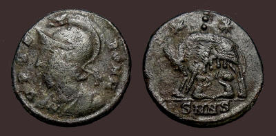 mint. 333-334 AD. Obv: helmeted and mantled bust of